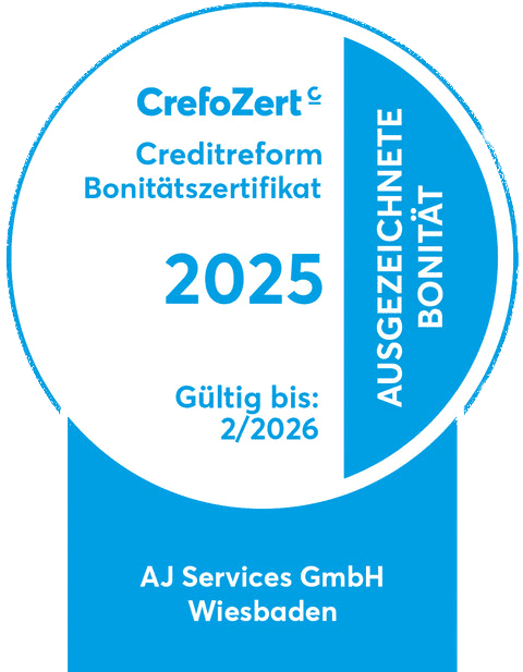 Die AJ-Services GmbH ist nach DIN ISO 9001 zertifiziert und garantiert damit ein hochqualitatives und kundenorientiertes Qualitätsmanagementsystem. Diese Zertifizierung bestätigt, dass unsere internen Prozesse effizient und transparent gestaltet sind, um kontinuierliche Verbesserungen und höchste Qualitätsstandards in unseren Dienstleistungen sicherzustellen.